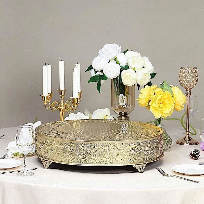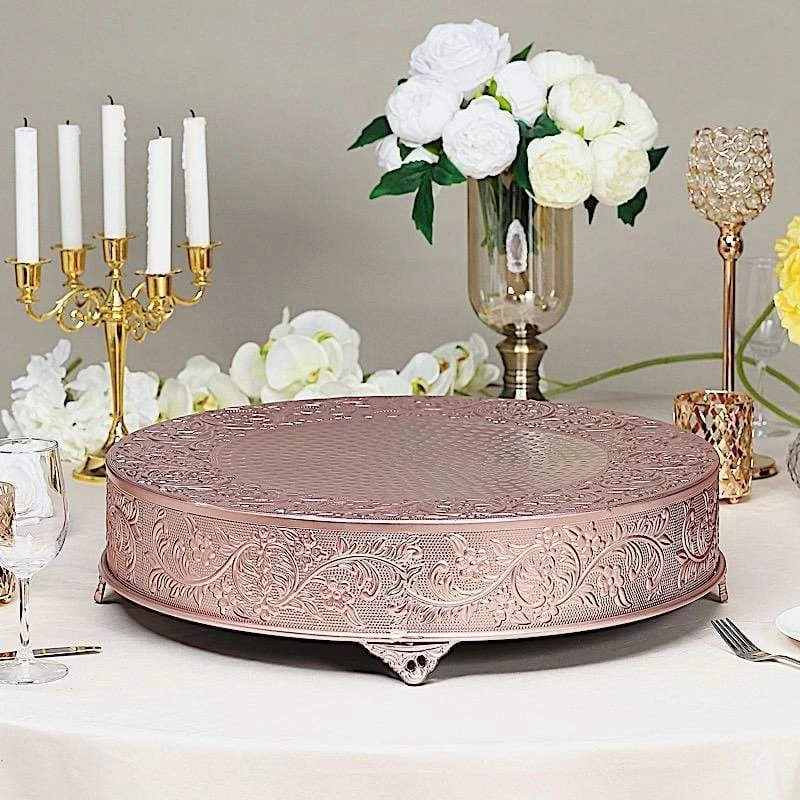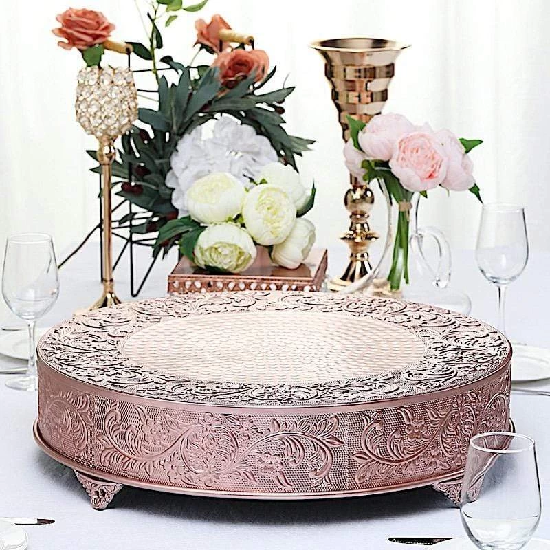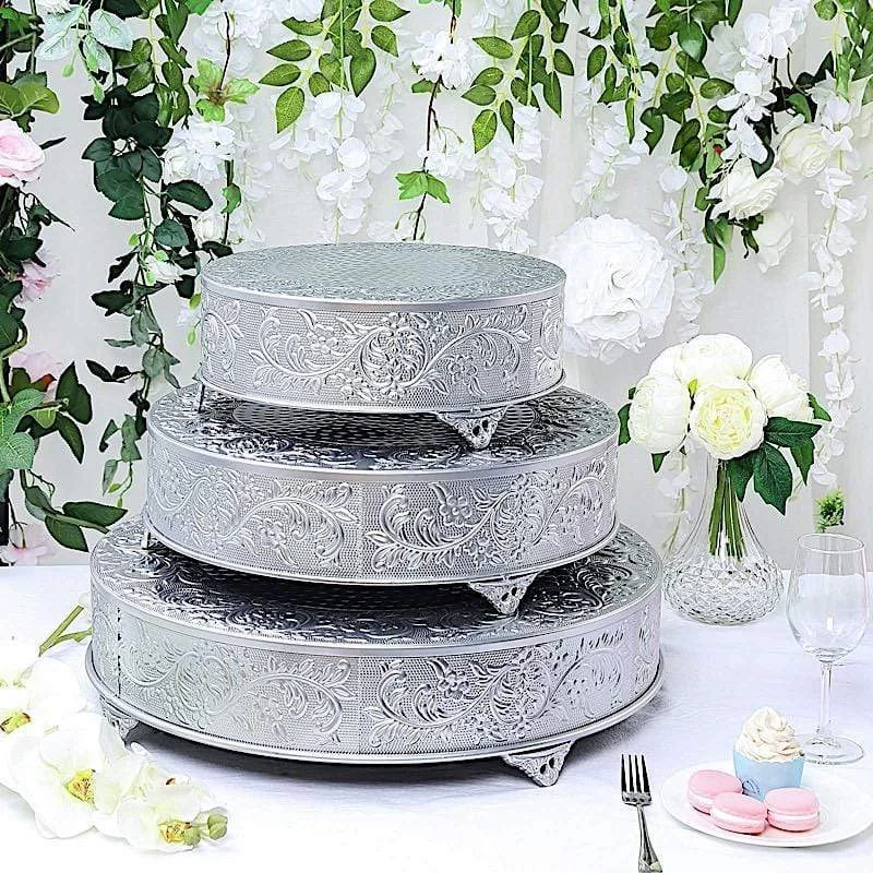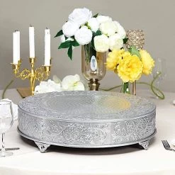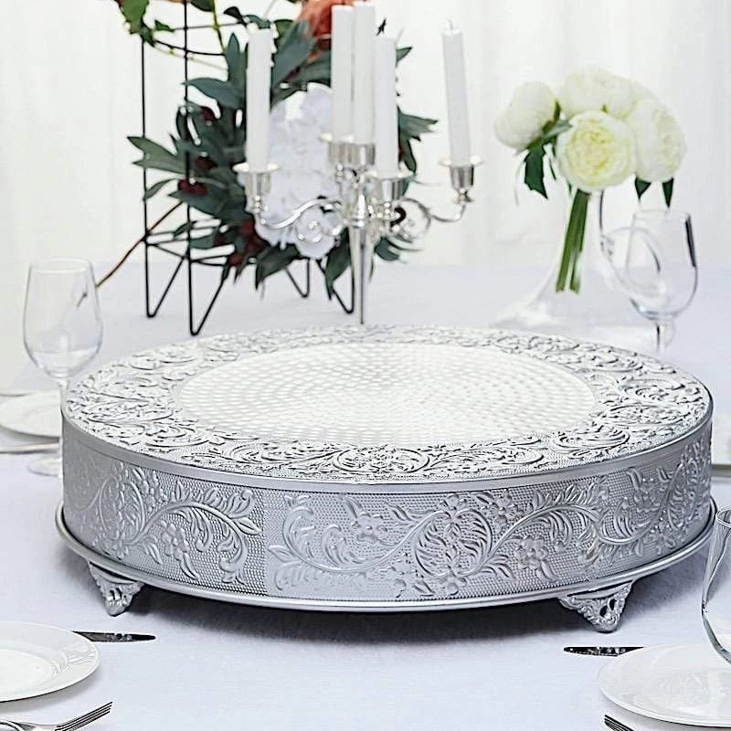 Display your desserts in style with this elegant cake stand. These round cake plateaus with side and top embossed designs will help to serve your sweet treats with outstanding elegance. Perfect for all occasion cakes, cupcakes or other goodies, this is just the cake stand you need to bring sparkle to your celebration!