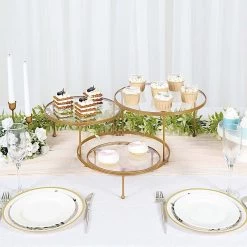 Display your cake and cupcake in style with this elegant dessert stand! Crafted from high-quality metal frames with varying heights and round acrylic plates on top, this versatile serving stand will create a sophisticated look for your party table setting. Perfect for all occasion cakes, cupcakes or other goodies, this is just the dessert stand you need to bring a bit of sparkle to your celebration. The possibilities are endless! This versatile stand can also be used to display candles, flowers, and foliage to make decorative centerpieces for your weddings, parties, and events.