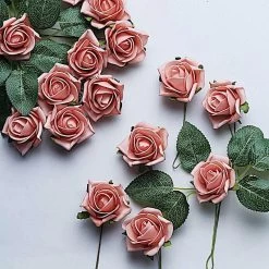 Give any space a refreshing atmosphere with artificial rose flowers. These romantic foam roses with life-like leaves and easy to bend stems will make an excellent addition to your floral arrangements, kissing balls, bridal bouquets, wedding aisle decorations, wall or party backdrop accents, home centerpiece displays and event decor. With lots of colors to choose from, these soft blooms will provide a long-lasting beauty anywhere you place them. Also perfect as accents for party favors and gift boxes.
