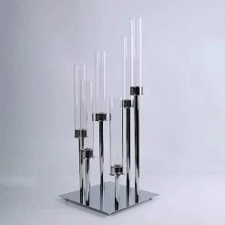 Add romance to your special day with our graceful candelabra candle holders. This 24 inches tall candle holder will add a special touch to any space. The candle holder features 6 removable glass shades that will surely create a sophisticated look for your space. This candelabra will complement any table, entryway, dining room or anywhere else with a fun, fancy touch of light. It is perfect for weddings, events, and parties as centerpieces, or simply as decorative pieces for your home.