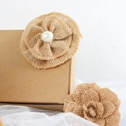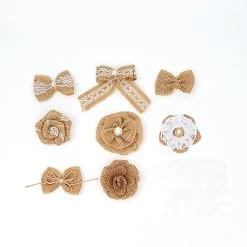 These pre-tied burlap ribbon bows and flowers will make the perfect finishing touch for your party gifts, holiday presents and artistic craft projects. Featuring natural, rustic burlap with lace and pearl accents, these multipurpose ribbon bows will allow you to easily add charm to your designs and decor. Use them to embellish your birthday cards, wedding invitations and favor boxes, bridal bouquets or anything you can think of. The possibilities are endless!