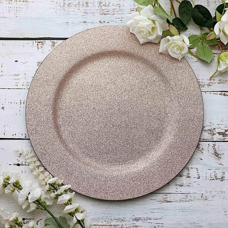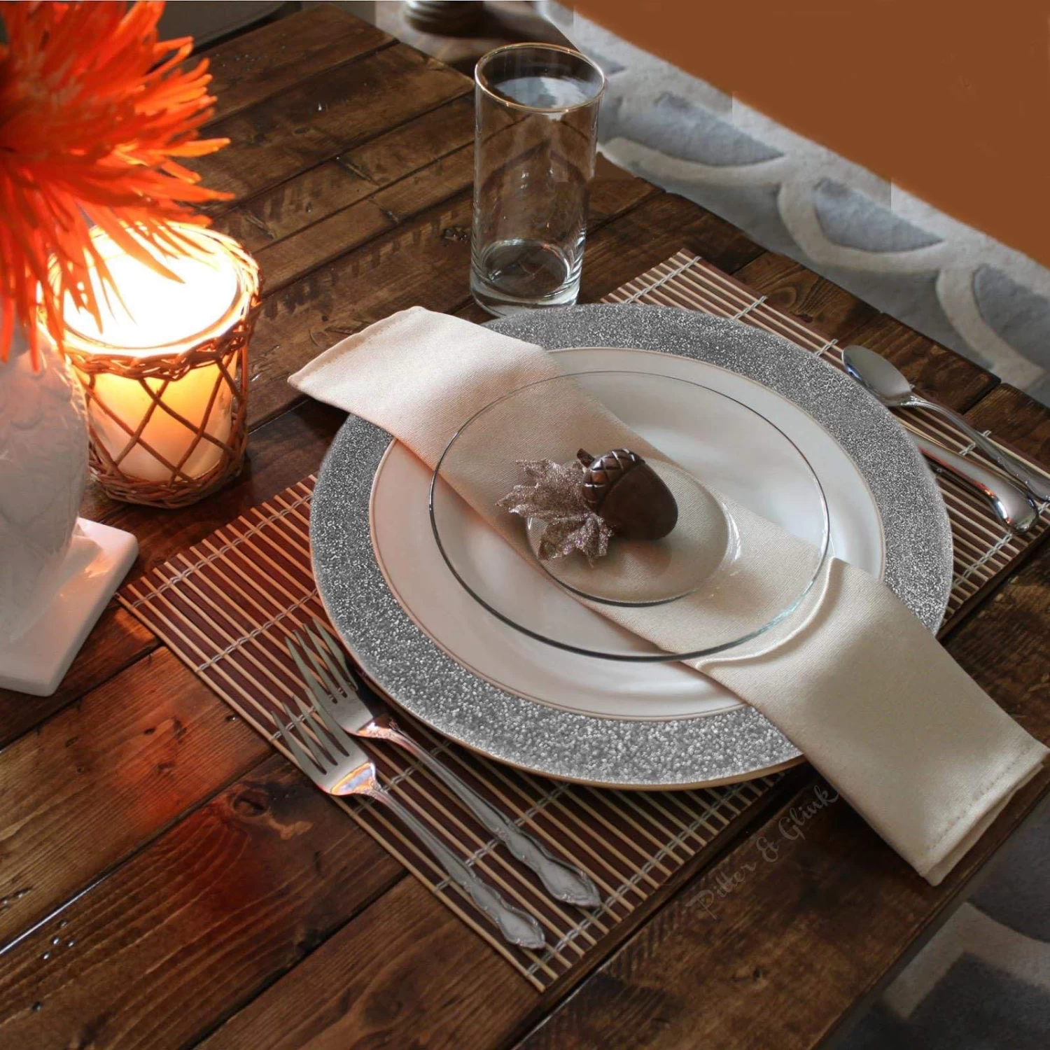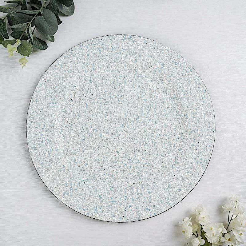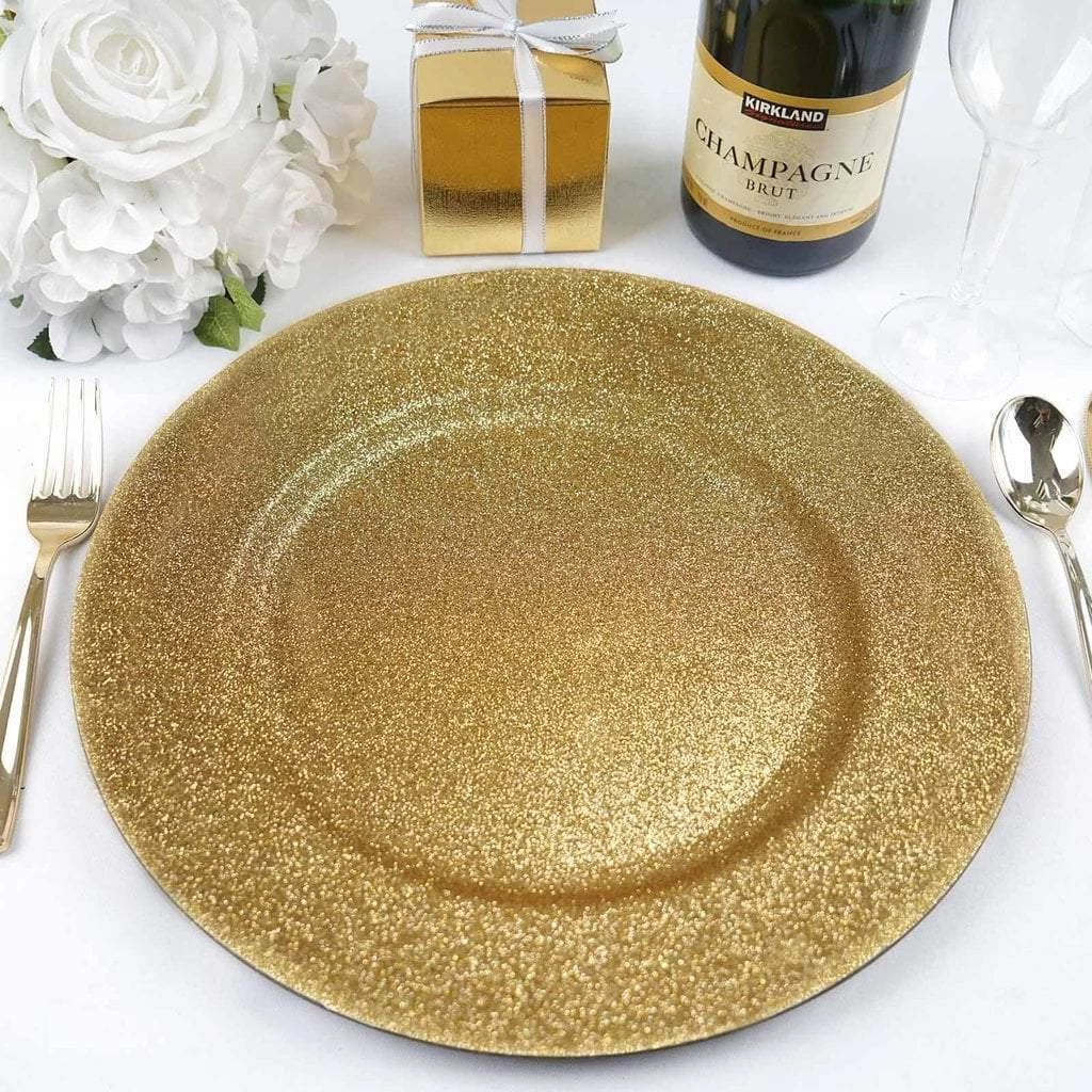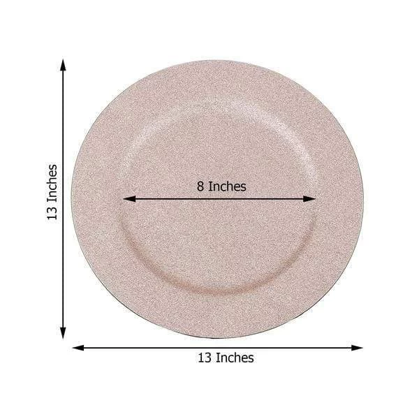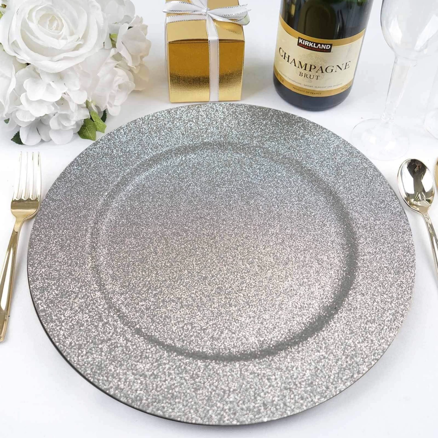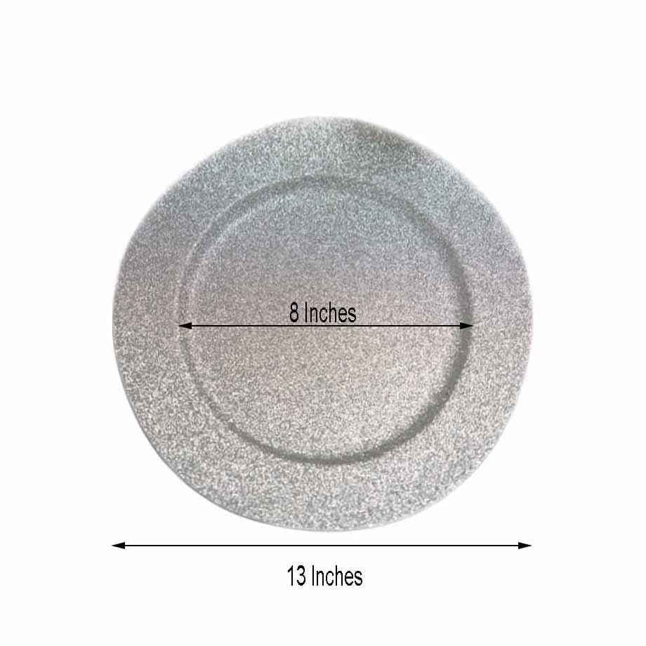 Create the perfect mood for every dinner occasion with these stunning glittered chargers. Use our charger plates to enhance the appearance of your reception tables. Great to use with fine china and to protect the linens from the plates and bowls. They are easy to clean, just wipe with damp cloth or sponge.