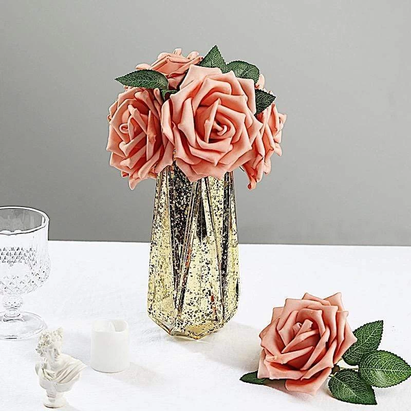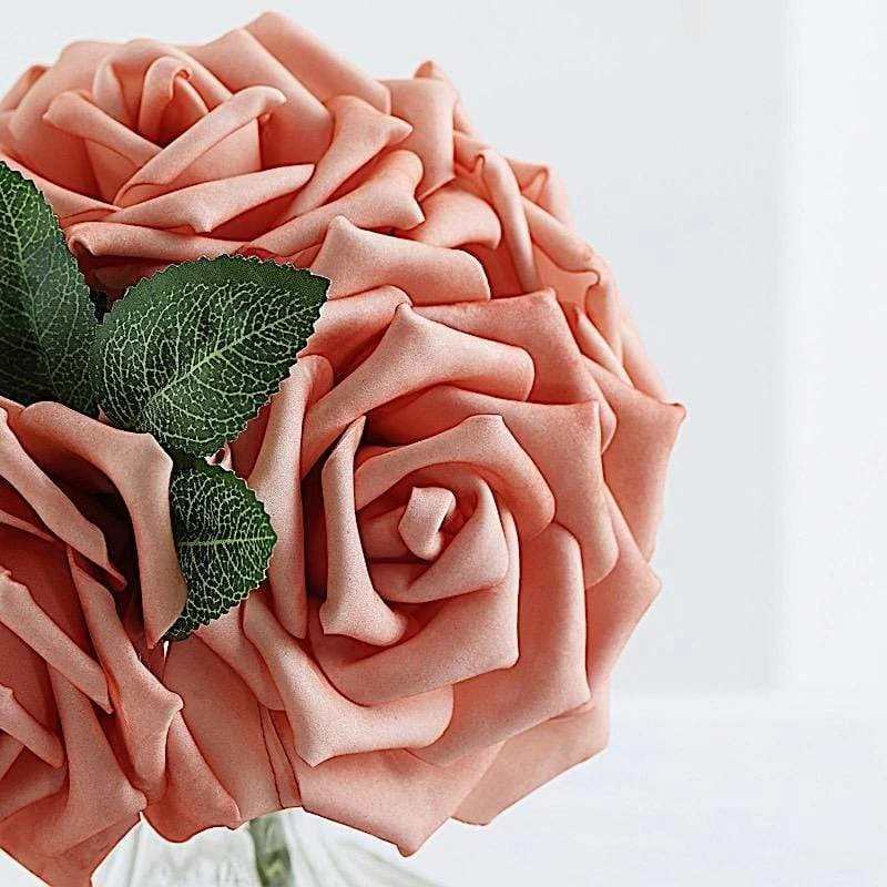 Give any space a refreshing atmosphere with artificial rose flowers. These romantic foam roses with life-like leaves and easy to bend stems will make an excellent addition to your floral arrangements, kissing balls, bridal bouquets, wedding aisle decorations, wall or party backdrop accents, home centerpiece displays and event decor. With lots of colors to choose from, these soft blooms will provide a long-lasting beauty anywhere you place them. Also perfect as accents for party favors and gift boxes.