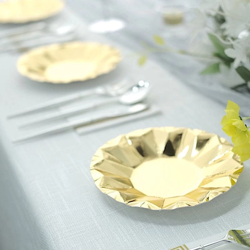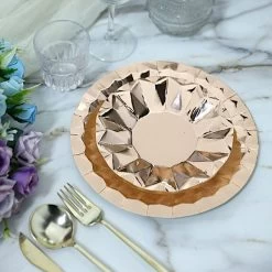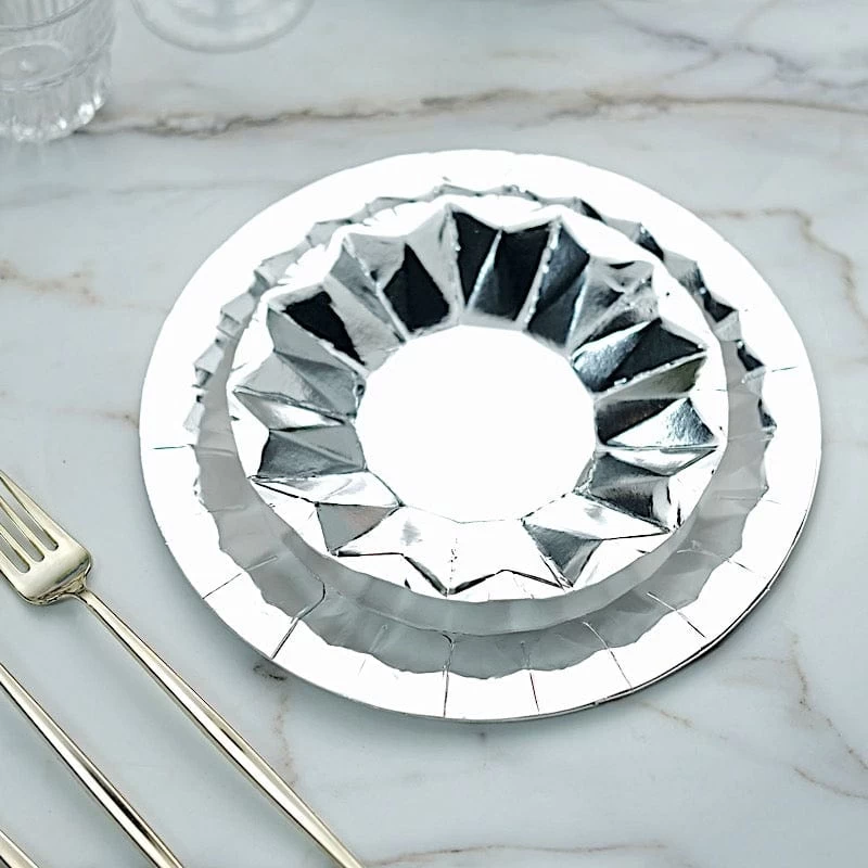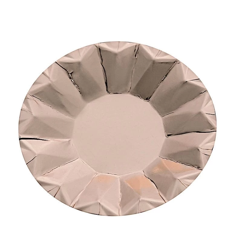 Entertainment just got easier. Serve your guests using these practical yet stylish plates and let your great food speak for itself! High quality metallic paper plates with geometric design will make any dinner or lunch look extraordinary. Great alternative for plastic plates and a perfect choice for fine dining occasions where fast cleanup is a must! Use these paper plates for weddings, bridal showers, baby showers, birthday parties or any special events.