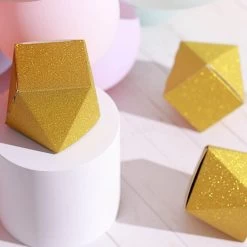These cute and stylish favor boxes are perfect for holding little goodies for your guests! Featuring a striking geometric shape with a glittered finish, these treat boxes are perfect for gifting your chocolates, candies, baked goodies or any special treats. Customize with ribbons, tags and thoughtful stickers and messages for a more personalized touch. Ideal gift boxes for weddings, parties, birthdays, baby showers or any special occasions.