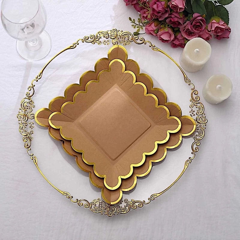 Entertainment just got easier. Serve your guests using these practical yet stylish plates and let your great food speak for itself! High quality paper plates with scalloped trim will make any dinner or lunch look extraordinary. A great alternative to plastic plates and perfect for fine dining occasions where fast cleanup is a must! Use these paper plates for weddings, bridal showers, baby showers, birthday parties or any special events.