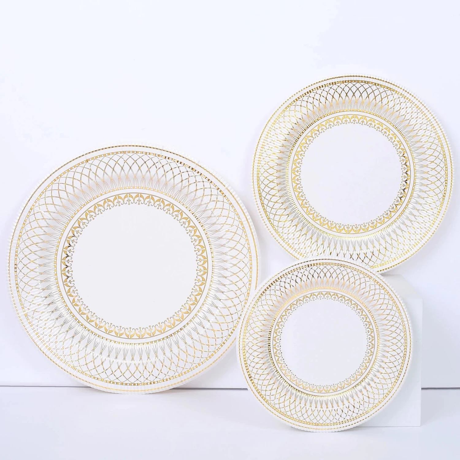 Nothing makes a practical addition to your fancy table settings like these elegant round paper charger plates! These paper chargers with a vintage look are perfect to spotlight your salad or dinner plates, bowls, cutlery or any party tableware. The ideal choice for fine dining occasions where fast cleanup is a must. Use these disposable charger plates for birthday parties, holiday dinners, weddings, bridal showers and any special events.
