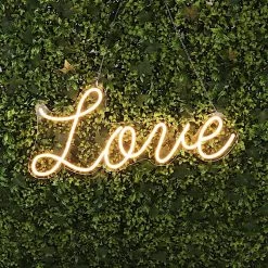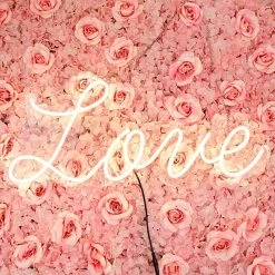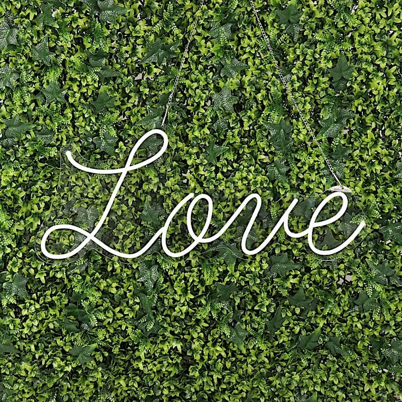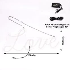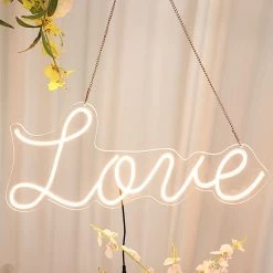 LED neon signs will beautifully illuminate your space. Versatile, safe and easy to use, this “Love” neon sign will be a perfect lighting decor for your weddings, engagement parties, bridal showers, anniversaries or any matching themed events. A silicone LED light strip attached to high quality acrylic backplate with a metal hanging chain makes this sparkling neon sign. Light up your event backdrops or photography background or simply use it to decorate walls and set the mood for your party room. The possibilities are endless!