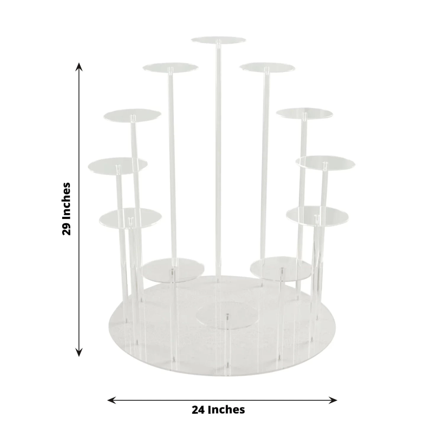 Celebrate your day with something that is both decorative and functional! This acrylic cupcake holders stand will make a stylish dessert display for your weddings, birthdays, parties or any special gatherings. With 12 holders to fill with cupcakes, muffins or sweet treats, this lovely display stand will elevate the look of your dessert tables. The wide, round, sturdy base can showcase your party cake and provide stability at the same time. Pair with candle displays and flower arrangements for an outstanding dessert table decoration. Great for birthdays, weddings, parties or any special gatherings.