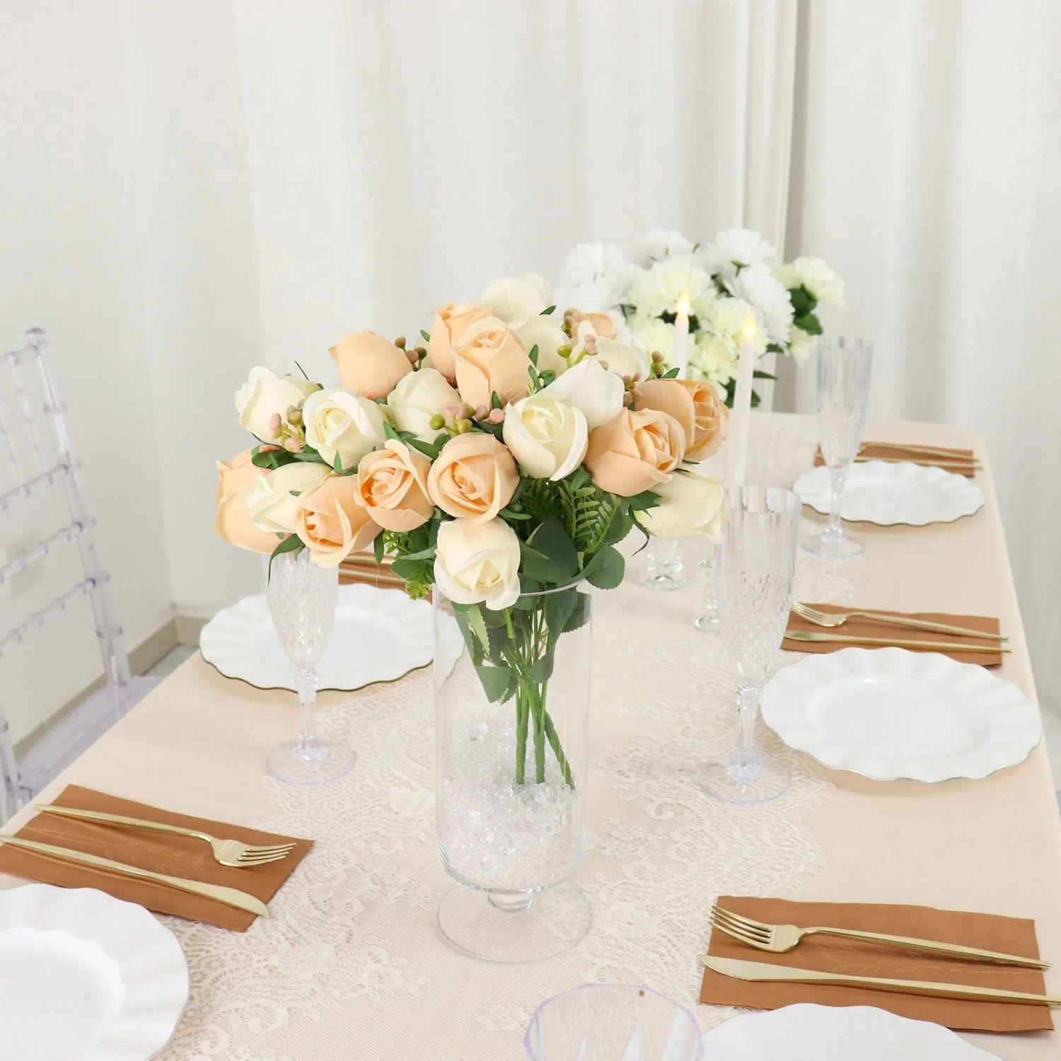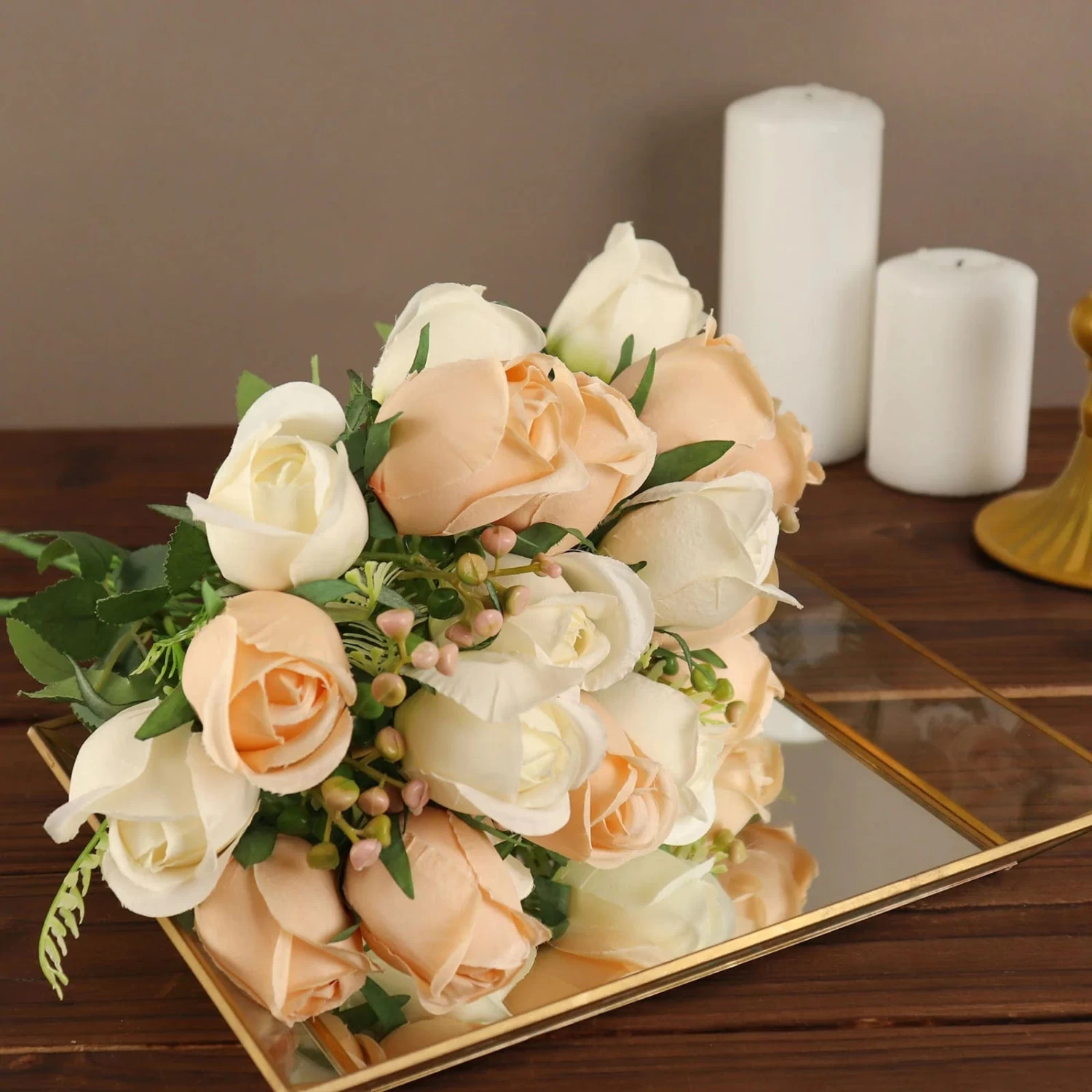 Decorate your special day with silk rose flowers! These beautiful artificial flowers with bendable wired stems are made with great attention to detail making them an excellent addition to your own projects and designs. Use them in a bridal bouquet or make a custom centerpiece. The fresh-picked look of these high-quality silk roses will complete your wedding flower arrangements and delight your guests.