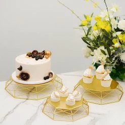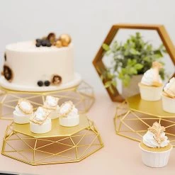 Display your desserts in style with geometric cake stands! Crafted from high-quality metal, these stands will help to create an elegant look for your party table setting. Arriving in a set of 3, these cake stands are perfect for all occasion cakes, cupcakes and other goodies. Whether used individually or together, these are just the dessert stands you need to bring sparkle to your celebration.