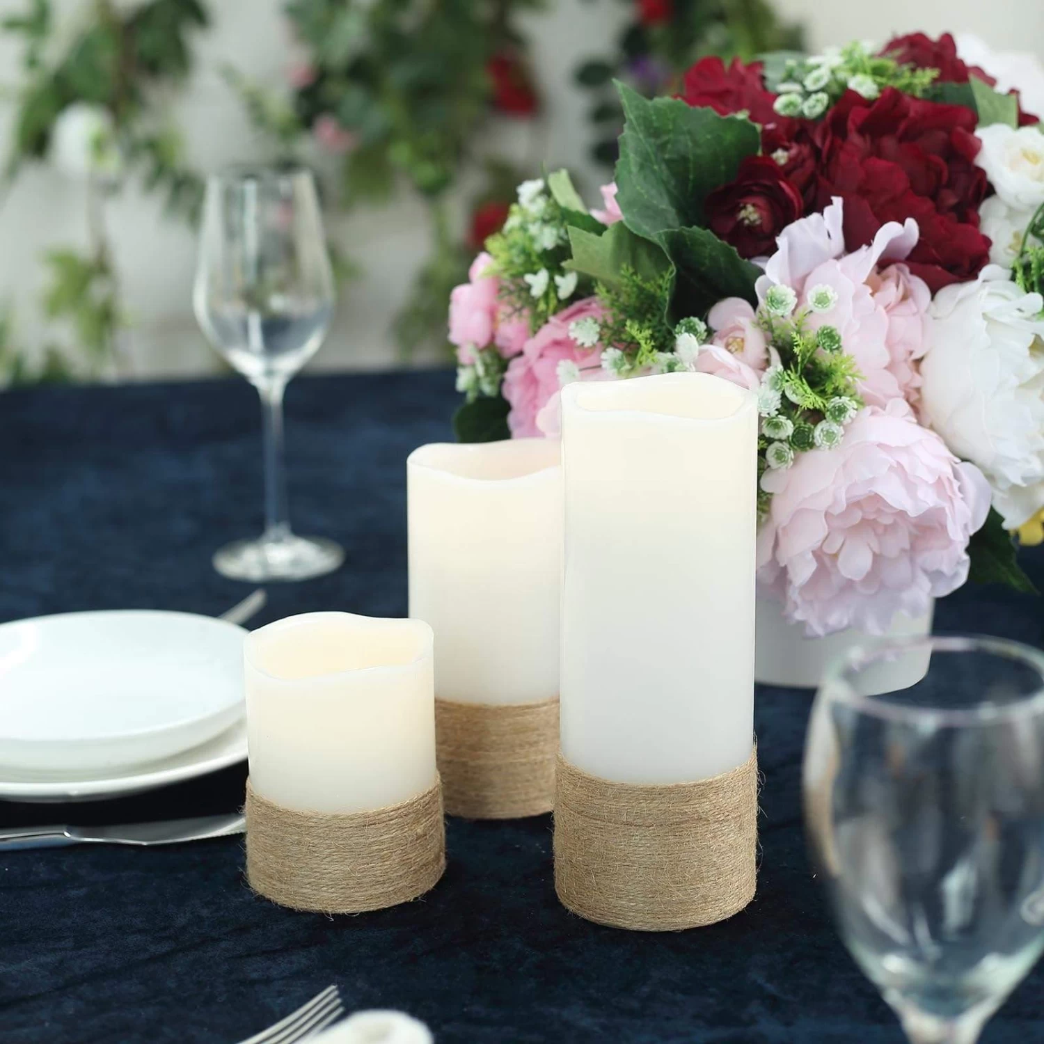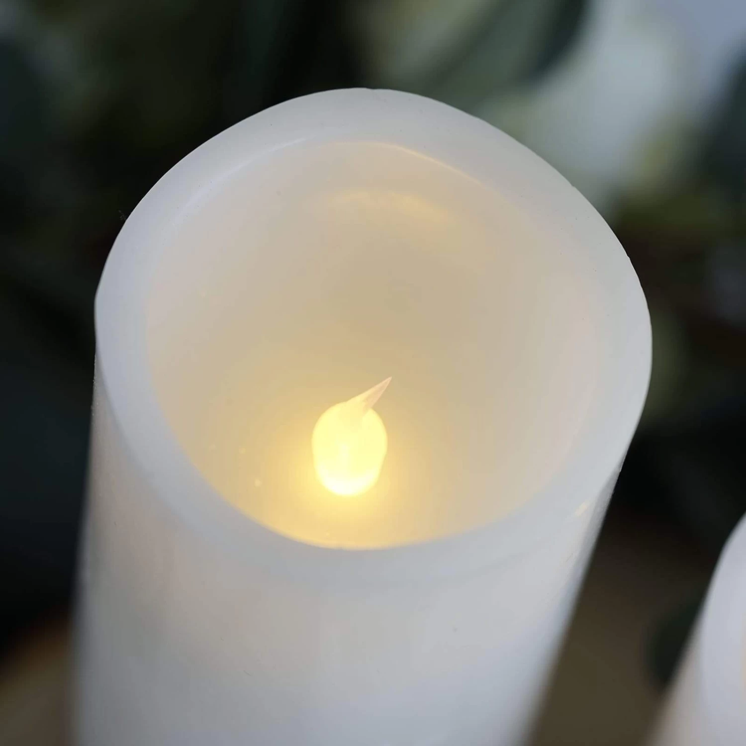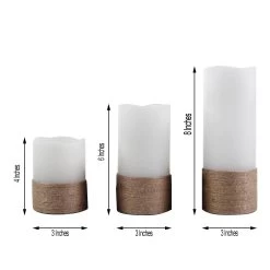 There are no more worries about burning flames or dripping wax with these charming LED candle lights! Featuring traditional pillar candles look with a wavy top and a remote control for time and mood setting, these LED candle lights are sure to create a romantic ambiance to your wedding, events, parties or even to your own home. Put them on your dinner tables and make every meal with your love ones extra special. These LED lights are battery operated with 3 AA batteries that are not included.