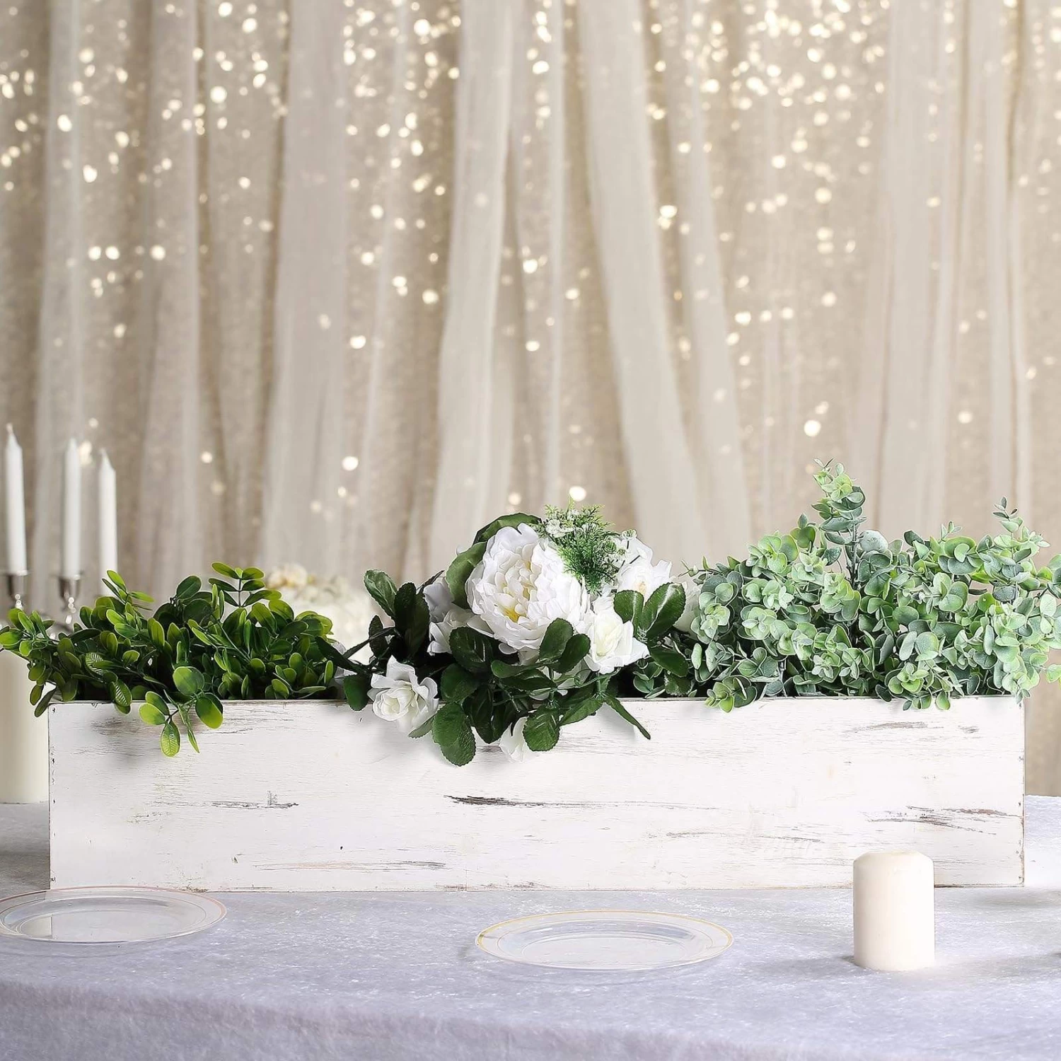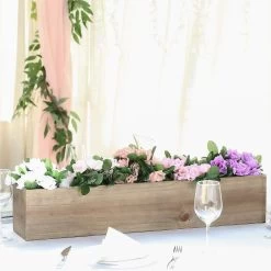 This small wooden box has a rustic natural brown finish. Create instant ambiance at your next party by placing rectangular wooden boxes as centerpieces or party favors on tables with greenery, succulents or colorful flowers. Make a personalized storage bin for beads or small craft supplies after the party is over.