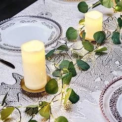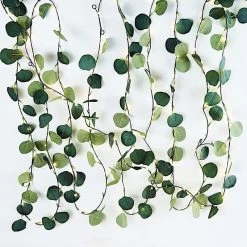 Provide romantic lighting to any decorations with this LED eucalyptus greenery garland! Featuring a combination of realistic and refreshing silk leaves with bright fairy string lights, this LED garland will create a dazzling look for your wedding reception, parties, events or any special occasion. Created with a bendable wire stem, this battery-operated garland can be used as backdrops or as an accent to your table centerpieces, pillars, arches, poles, banisters or floral decor to create a fairytale effect. These LED lights are battery operated with 3 AA batteries that are NOT included.