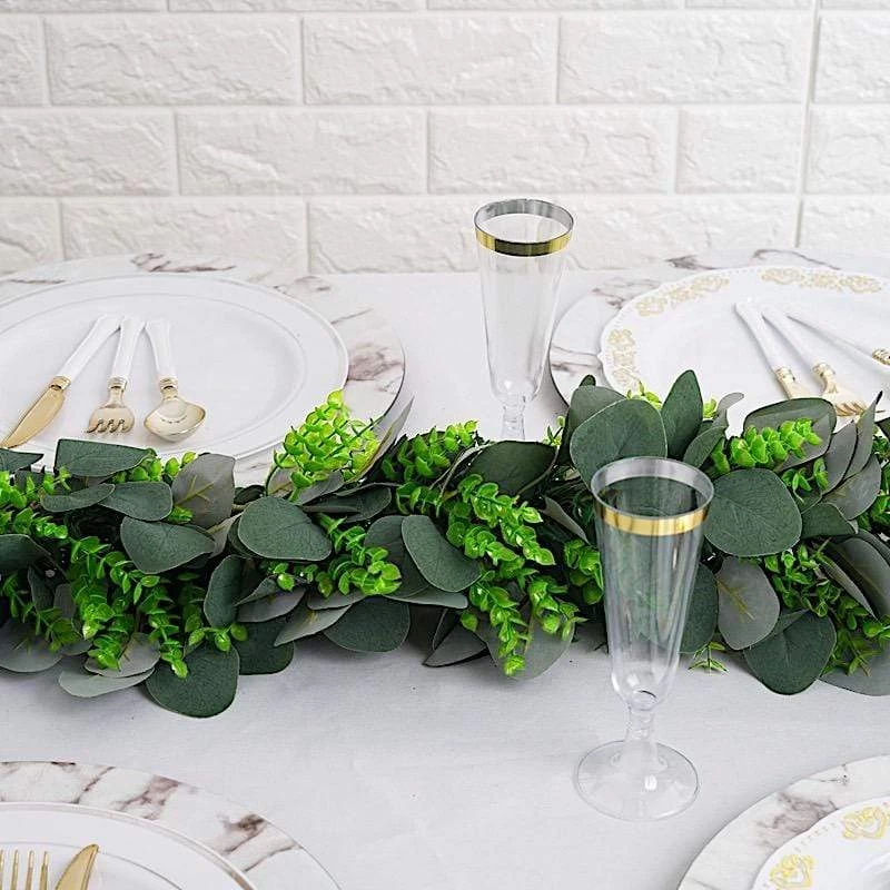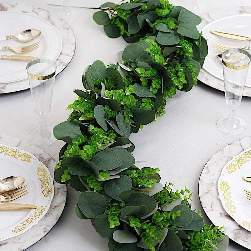 Decorating is simple with these classic green leaves garlands. Whether to grace an aisle, home, stairway, or arch decorations, these great quality artificial greenery garlands will create a warm and welcoming atmosphere for your guests. This lush green garland gives a fresh, clean look to any space and would look lovely on the mantle, over the cabinets, or strung on the stairs.
