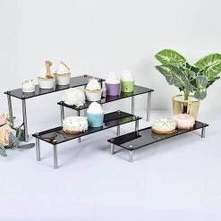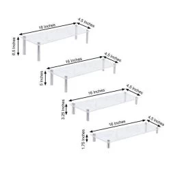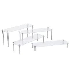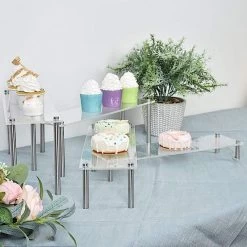 Celebrate your day with dessert stands that are both decorative and functional! Lines of acrylic panels with high quality chrome metal feet come together in these elegant dessert stands. Whether used individually or arranged in ascending order like a waterfall design, these stylish stands with varying heights will create a modern display or centerpiece for your weddings, birthdays, parties or any special gatherings. Use it for your appetizers, desserts, favors, sweet treats or pair it with candles, small floral arrangements, plants, succulents and fairy lights for outstanding dessert table decorations. This set also makes a perfect gift for family and friends.