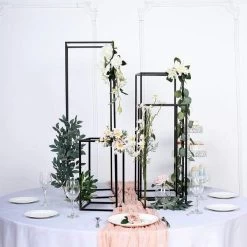 Enhance up your special day with our geometric flower vase holders! Crafted from metal, they provide a contemporary look with an openwork, geometric design and a matte gold finish for a modern flair. These stands are easy to pair with other tabletop decorations and can be accented with a variety of flowers, greenery, display boxes or candles. Perfect for weddings, events, and parties as centerpieces, or simply as decorative pieces for your home or office. Also makes a lovely gift.