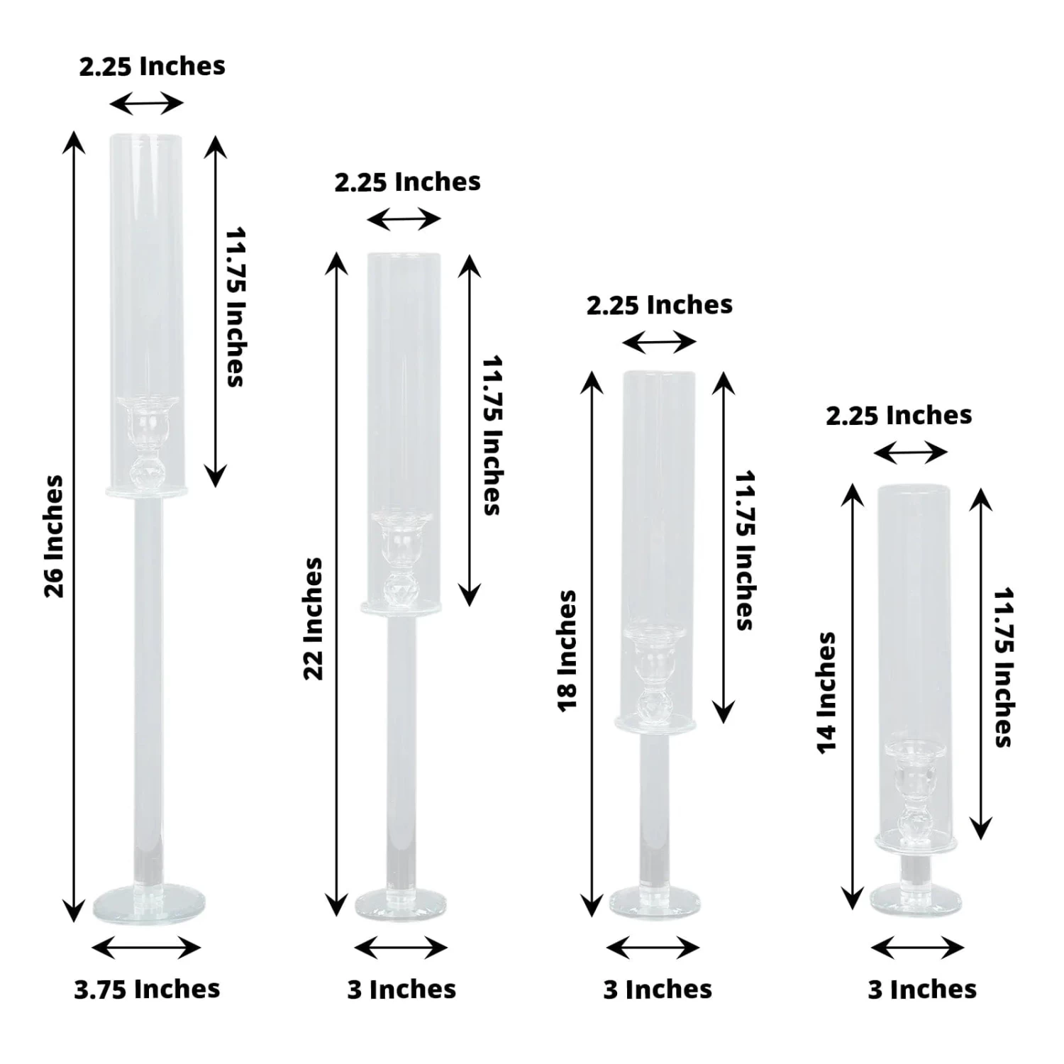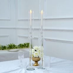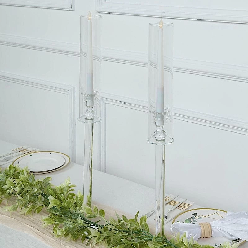These elegant glass taper candle holders are the perfect pick to bring a sense of ambiance to any room or space. Featuring a clean, crystal-like look from top to bottom, this set of stylish glass pieces is an ideal addition to your wedding, party or event decorations. These taper candle holders are designed with a round base and cylinder glass shades to secure your taper candles. Use them as centerpieces for your home or as decorations for your special occasions. The possibilities are endless!