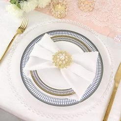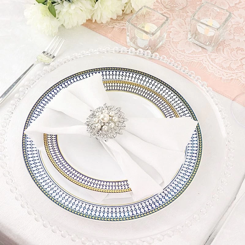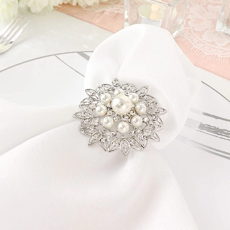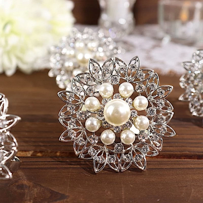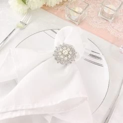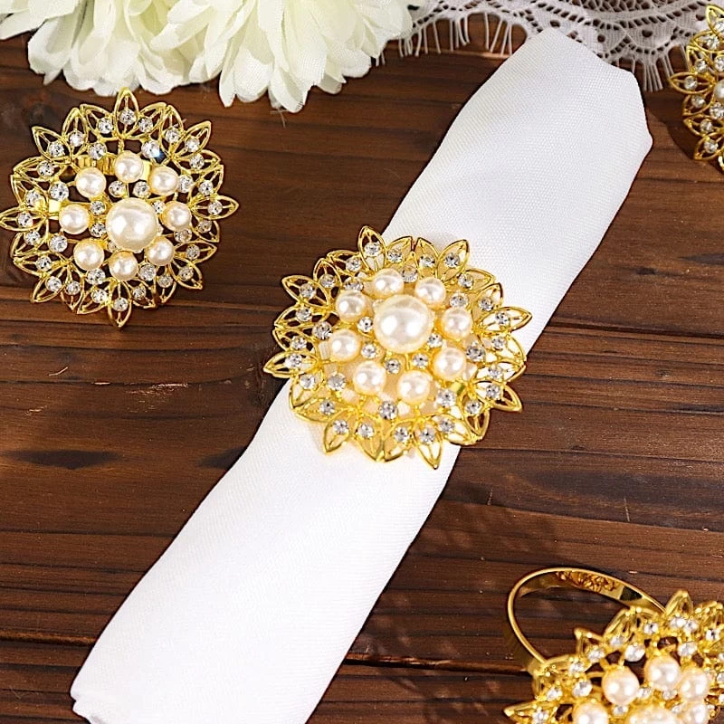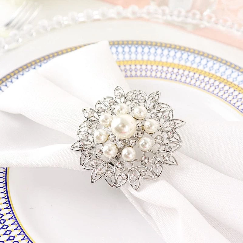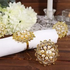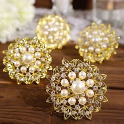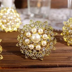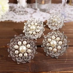These sparkling napkin rings with faux pearls and rhinestones accented flower top designs will make beautiful displays for your dining tabletops! Use these napkin rings as holders for your elegant linen or paper napkins and then match them with stylish chargers, cutlery and other table decorations to create the perfect look for your event tablescape. Ideal for parties, weddings, holiday dinners, birthdays or any special occasions.