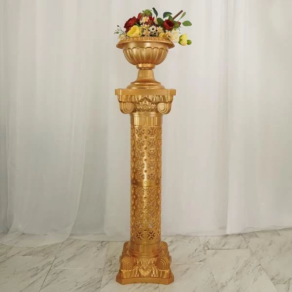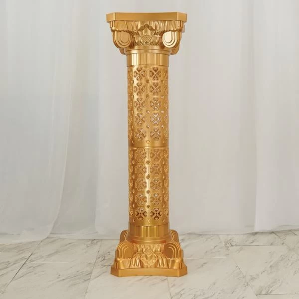 These columns pedestal stands can be used in so many ways: Isles, Altars, Floral stands, Picture and Floral displays. Wonderful decorative accents that can be installed permanently or set up for temporary displays or events. These decorative venetian Roman inspired plastic vases with adjustable height are ideal for weddings, display stands, parties, banquets, stage props or trade shows. If you’re looking for that classic architecture look, our pedestal stands are just what you needed!