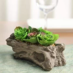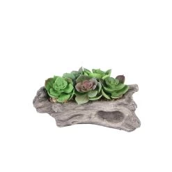 The decorating possibilities are endless with succulent plants in a driftwood planter from Balsa Circle! Combine this set with your existing decorations to make natural centerpieces for your wedding, anniversaries, bridal showers, and parties or in your own home. Featuring a driftwood look planter with realistic faux aeonium succulent plants, this arrangement will bring a natural touch of beauty and organic appeal to your celebration or living space. Also makes a lovely gift.