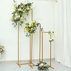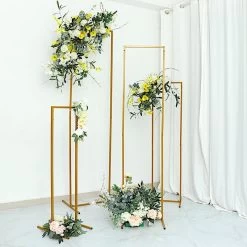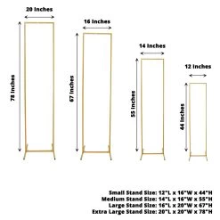 This set of rectangular display stands will help you set the scene for your parties, weddings, birthdays, bridal showers or any special occasions. Featuring sturdy, portable and self-standing metal. these versatile display frames will create a modern look for your events and home decorations. Decorate them with your gorgeous flower garlands, LED lights, balloons or any decor you like for your wedding arch or party backdrop. Use these metallic stands to showcase hanging decorations for your home or to create background decor for photo shoots and photography studios. The possibilities are endless!