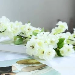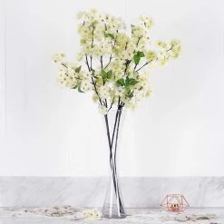 Sweet and delicate cherry blossom silk flowers will easily make eye-catching extra tall floral centerpieces! Add stunning height to your floor vase, any backdrop or arch. Full and beautiful cherry blossom are made with great attention to details making them an excellent addition to your own projects and designs. Use them in a bridal bouquet or make a custom flower arrangements.
