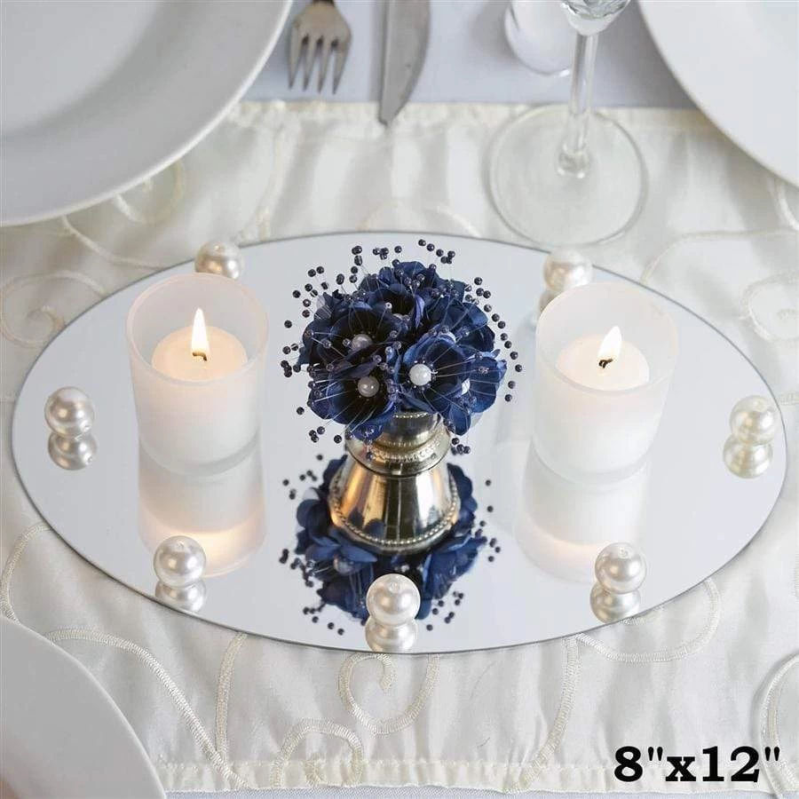 Enhance any centerpiece for your party with our lovely oval glass mirrors! The oval glass mirrors will be the perfect focal point to light up your table decorations. Use these mirrors for your wedding or home decor – with 4 mirrors per order, there’s plenty of mirrors to decorate your special event!