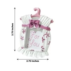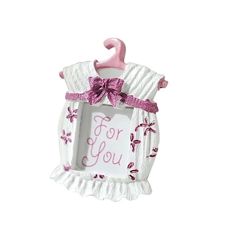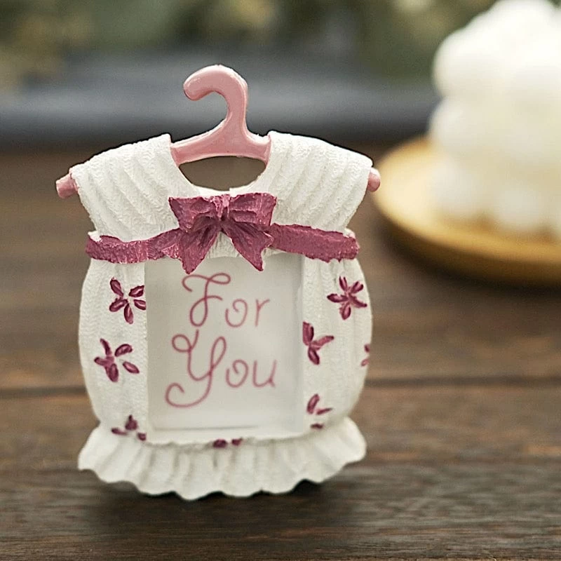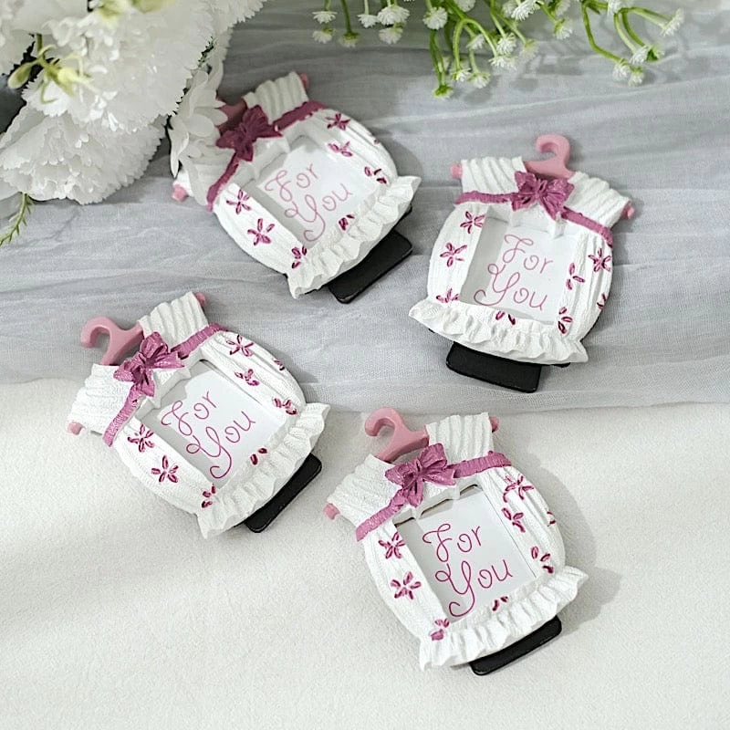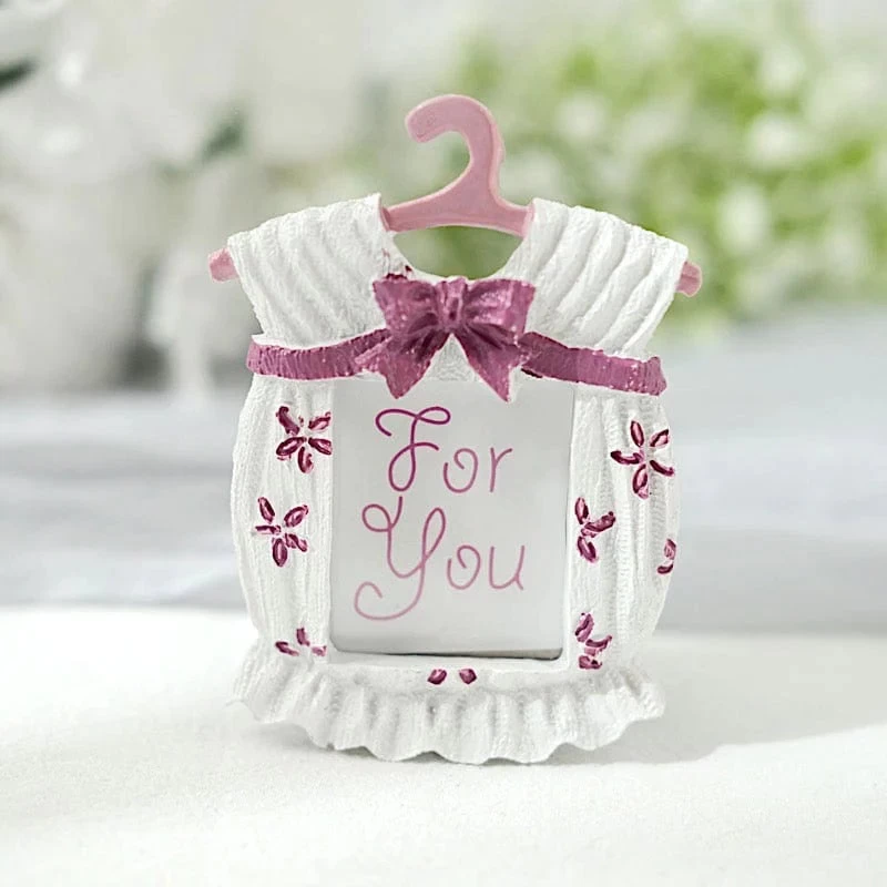 These stylish picture frames will surely delight your guests! Designed like newborn baby clothes and with an easel on the back, these self-standing mini frames will perfectly showcase your memorable photos. Great as decorative displays for your home, as place card holders for your party tables, as gifts, favors or souvenirs for gender reveals, baby showers or any matching themed parties. The ideal treat for your guests on special occasions!