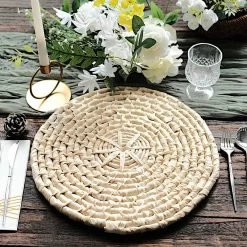 Create the perfect mood for every dinner occasion with these rustic placemats! These multipurpose round woven placemats can be used in a variety of ways. Whether as a base for dinnerware or for your gorgeous centerpieces, these durable and reusable placemats will create a trendy look and style for your formal or casual table setting. Surprise your guests with a charming and unique tablescape. The possibilities are endless!