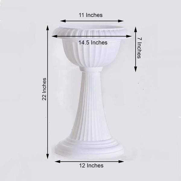 These pedestal flower pots can be used in so many ways: Isles, Altars, Floral stands, Picture and Floral displays. Wonderful decorative accents that can be installed permanently or set up for temporary displays or events. These decorative Italian inspired plastic vases with are ideal for weddings, display stands, parties, banquets, stage props or trade shows. If you’re looking for that classic architecture look, our flower pots are just what you needed!