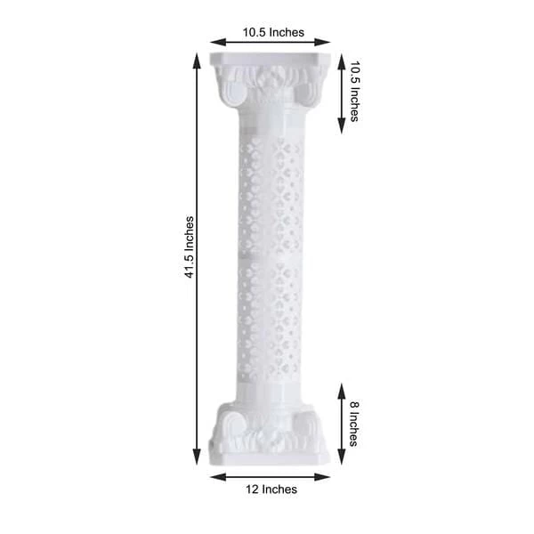 These columns pedestal stands can be used in so many ways: Isles, Altars, Floral stands, Picture and Floral displays. Wonderful decorative accents that can be installed permanently or set up for temporary displays or events. These decorative venetian Roman inspired plastic vases with adjustable height are ideal for weddings, display stands, parties, banquets, stage props or trade shows. If you’re looking for that classic architecture look, our pedestal stands are just what you needed!
