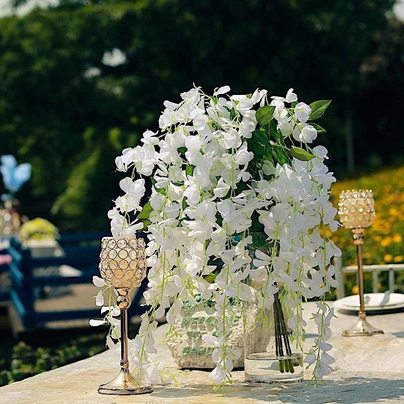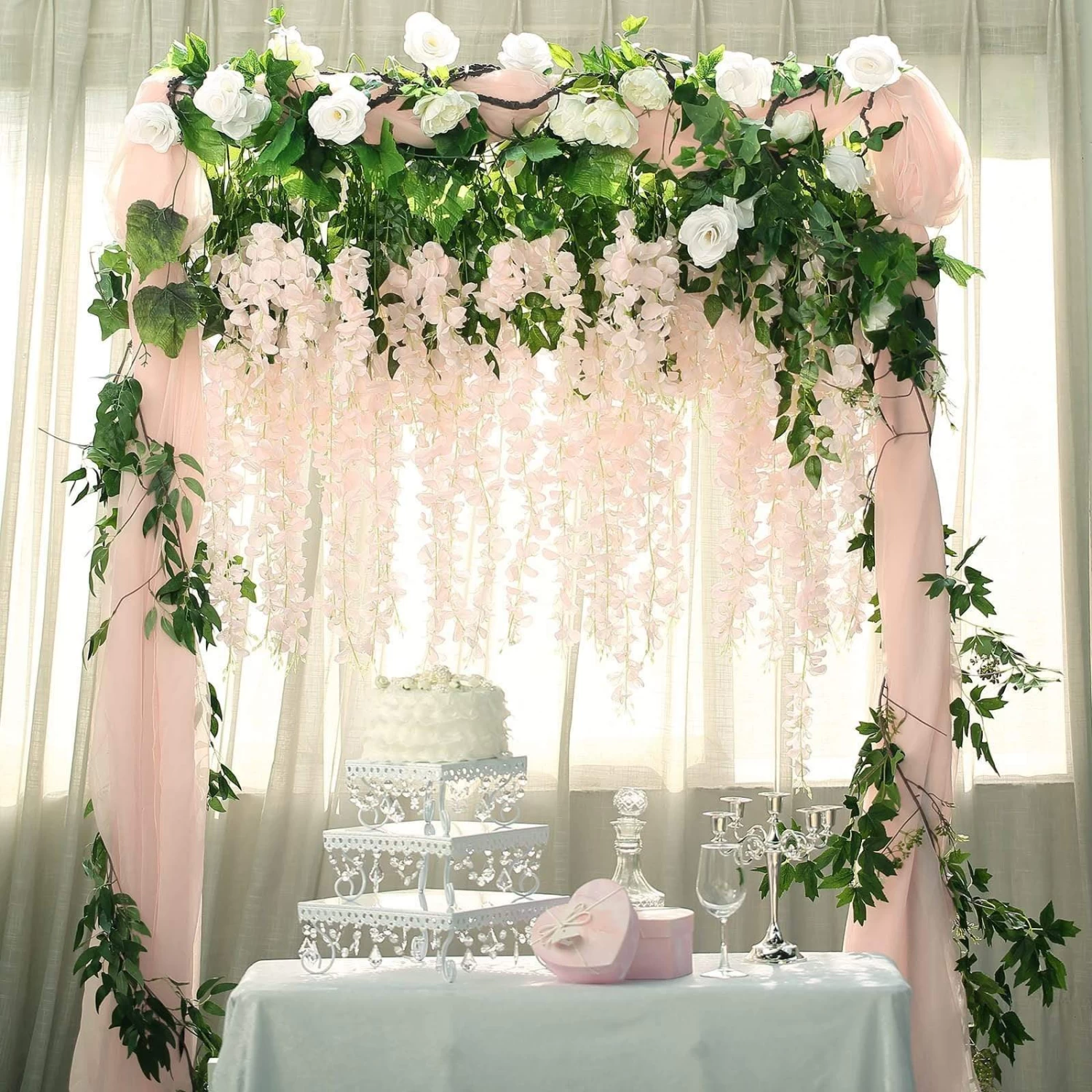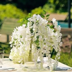 Sweet and delicate wisteria vine silk flowers from Balsa Circle will easily make eye-catching extra full floral centerpieces! Wisteria’s delicate, draping down flowers will liven up floor vases, centerpieces or any room decor. Cascading flowers add visual interest to wedding arches, backdrops and more.
