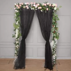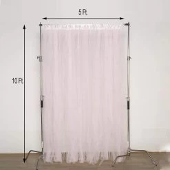 Instantly elevate any backdrop at your party or any window in your home with these stylish, semi-sheer 5 feet wide curtain panels. Crafted from high quality tulle fabric with understated silk rod pocket, these backdrop panels will create a dazzling atmosphere for wedding, parties, events and even trade show booths. Add extra fabric or accent them with fairy lights for a truly eye-catching look.