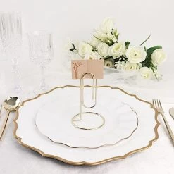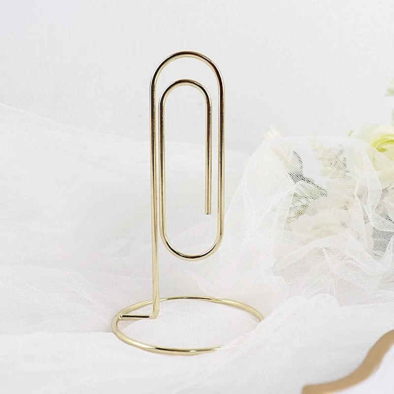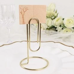 These metal sign holders are a stylish way of displaying table numbers, place cards, small photos or sweet messages for your party. Designed with a sturdy round base that will provide stability for the paperclip-shaped card holder, these high quality metal table number stands will be a great addition to your party tabletops. Together with your elegant tabletop decorations, these sign holders will add style and charm to your party setting.