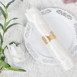 These metallic napkin rings with a lovely butterfly design will make beautiful displays for your dining tabletops! Use these napkin rings as holders for your elegant linen or paper napkins and then match them with stylish chargers, cutlery and other table decorations to create the perfect look for your event tablescape. Ideal for parties, weddings, holiday dinners, birthdays or any special occasions.