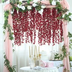 Sweet and delicate wisteria vine silk flowers from Balsa Circle will easily make eye-catching extra full floral centerpieces! Wisteria’s delicate, draping down flowers will liven up floor vases, centerpieces or any room decor. Cascading flowers add visual interest to wedding arches, backdrops and more.