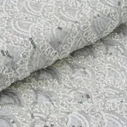 Material: Silver sequins on top of white tulle netting, with iridescent thread laced throughout.