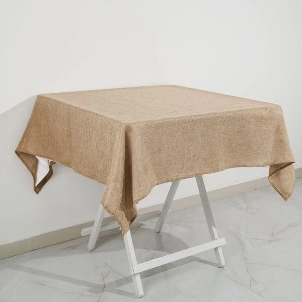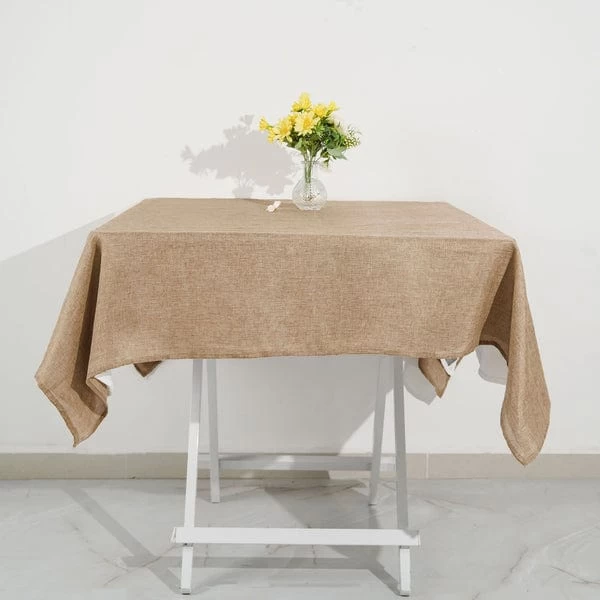 Crafted from a high quality faux burlap fabric with seamless design, this faux burlap square tablecloth will be a great addition to your table decorations. These tablecloths with unique texture will dress up your party tables with country charm and rustic chic. Perfect for small family dinners, get-together, outdoor weddings, parties, events and any special occasions.