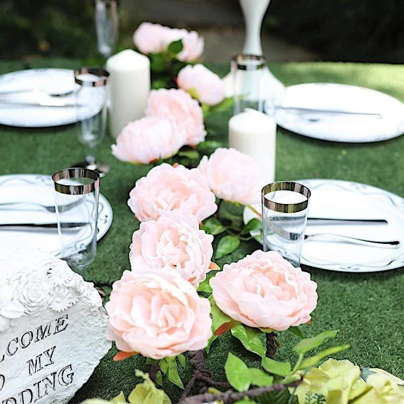 More lush than ever before, our elegant garland with silk peony flowers and leaves will help you to decorate and dress up any space in an instant. Use it to decorate your arch, poles, banisters, pews, on your dining room table as a centerpiece or on your mantle as a swag. Use our garlands for your home decorations long after party is over as they are crafted to last for years and easy to store and reuse.