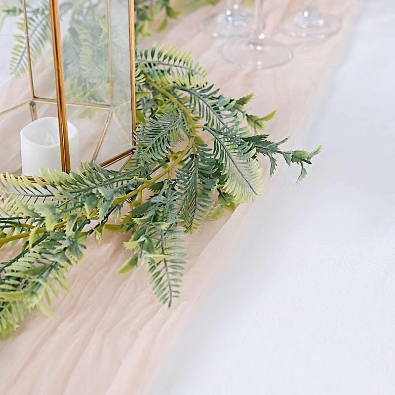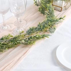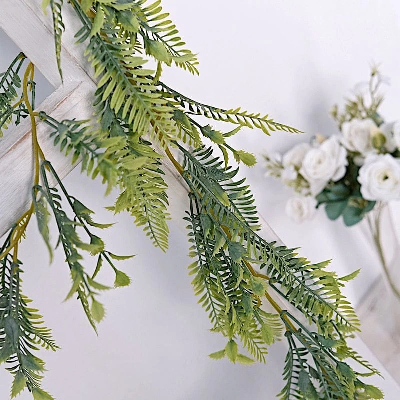 Decorating is simple with this incredibly realistic greenery garland. Whether to grace an aisle, stairway or arch decorations, this artificial leaf garland will create a warm and welcoming atmosphere for your guests. Perfect decor to bring an earthy look to your weddings, parties and events. This faux fern leaf vine will also add a fresh, clean look to any space in your home. It will be a lovely accent for your mantle, cabinets, stairs, doors and windows. The possibilities are endless!