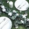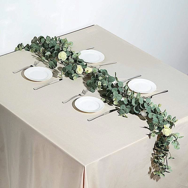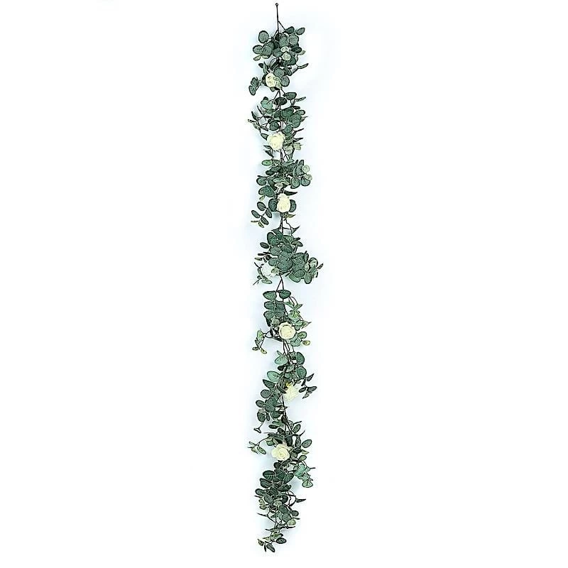 Decorating is simple with these classic green leaves garlands. Whether to grace an aisle, home, stairway, or arch decorations, these great quality artificial greenery garlands will create a warm and welcoming atmosphere for your guests. This lush green garland with roses gives a fresh, clean look to any space and would look lovely on the mantle, over the cabinets, or strung on the stairs.