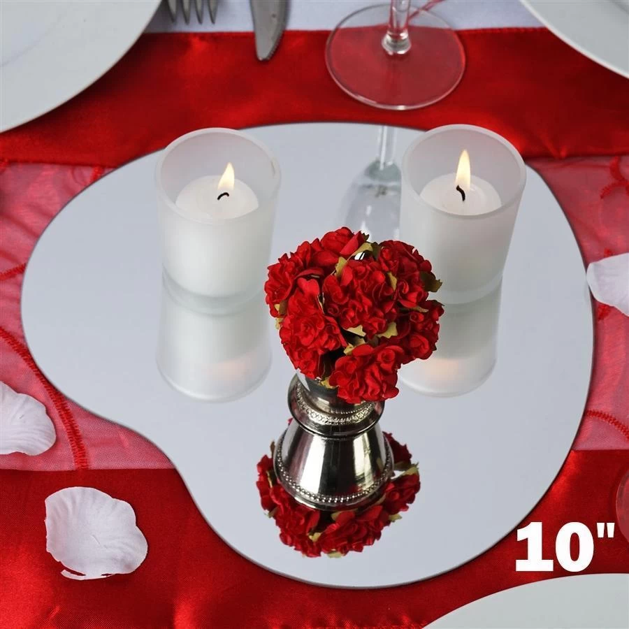 Enhance any centerpiece for your party with our lovely heart shaped glass mirrors! The heart glass mirrors will be the perfect focal point to light up your table decorations. Use these mirrors for your wedding or home decor – with 6 mirrors per order, there’s plenty of mirrors to decorate your special event!