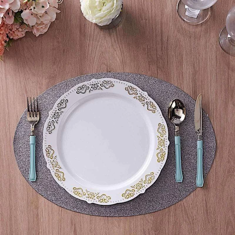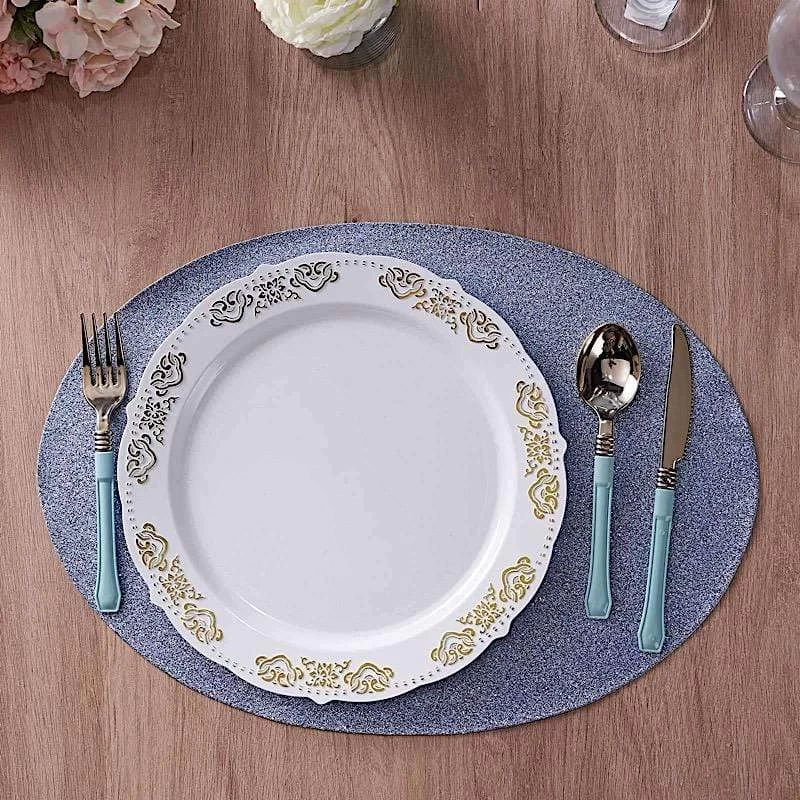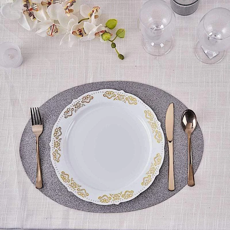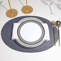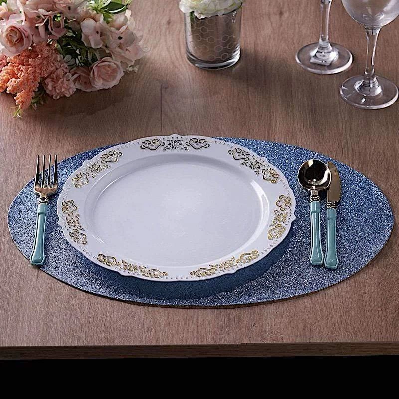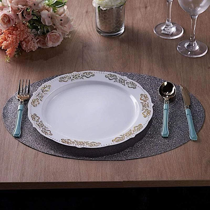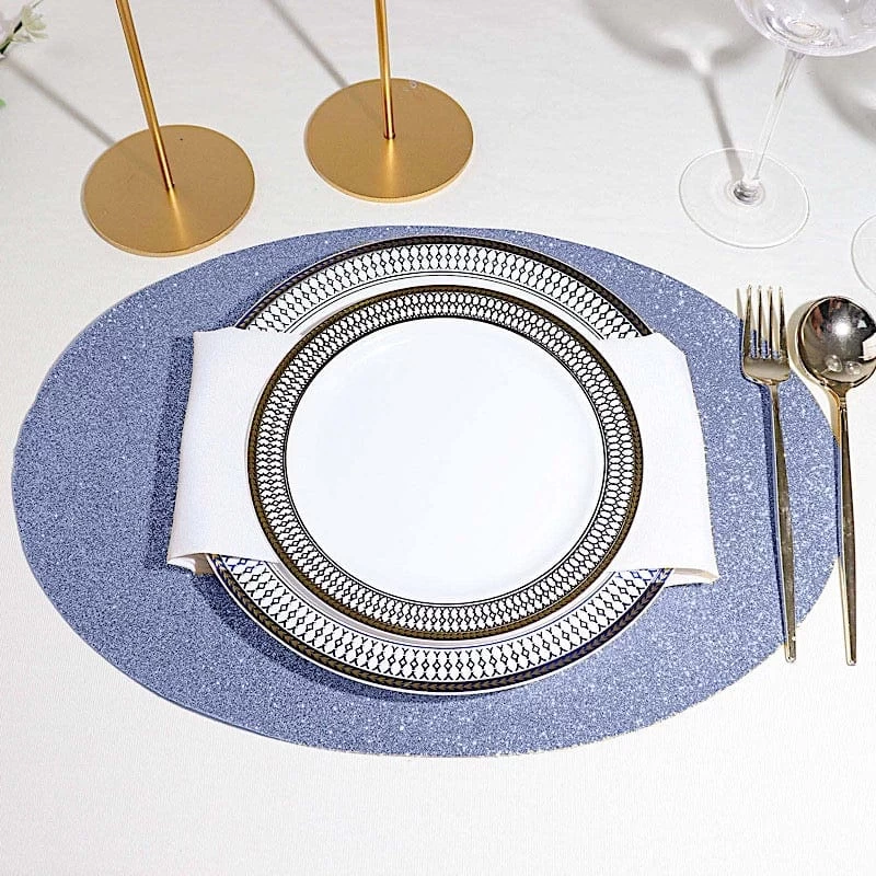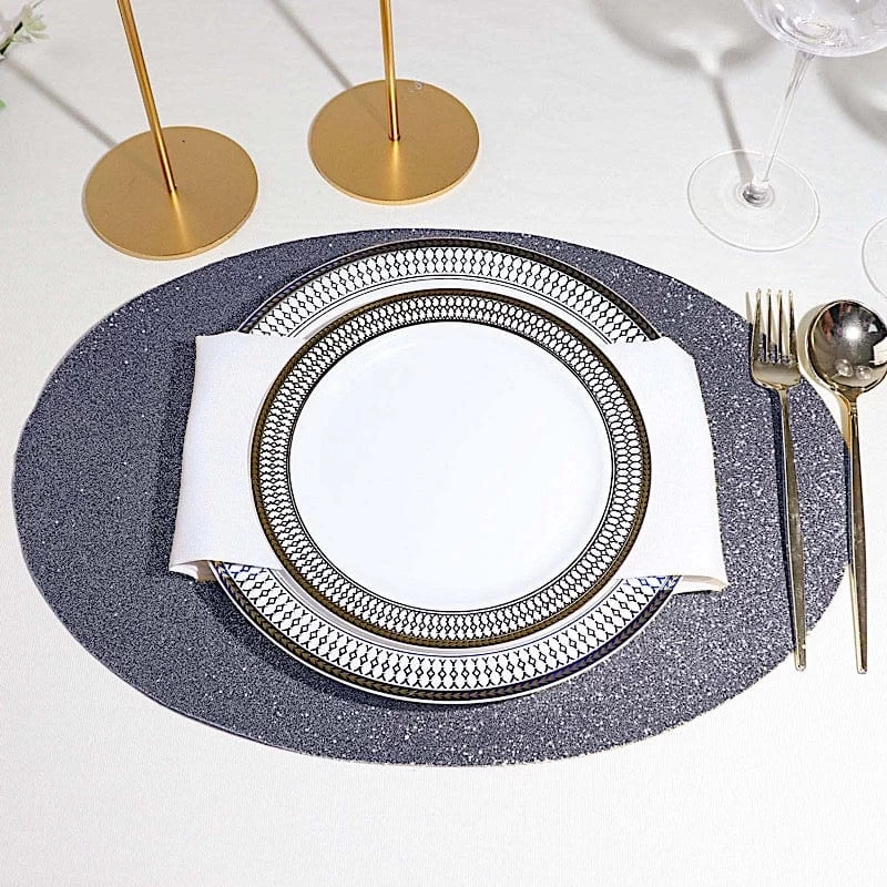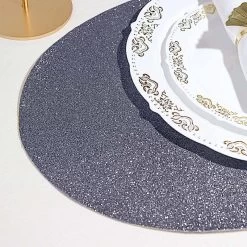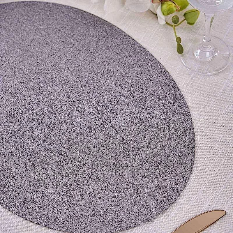 Create the perfect mood for every dinner occasion with these sparkling placemats! These multipurpose glittered placemats can be used in a variety of ways. Whether as chargers for your dinnerware or as a base for your gorgeous centerpieces, these reusable non slip placemats will bring a touch of contemporary style to your formal or casual table setting. Surprise your guests with a charming and unique tablescape. The possibilities are endless!