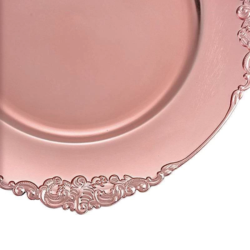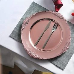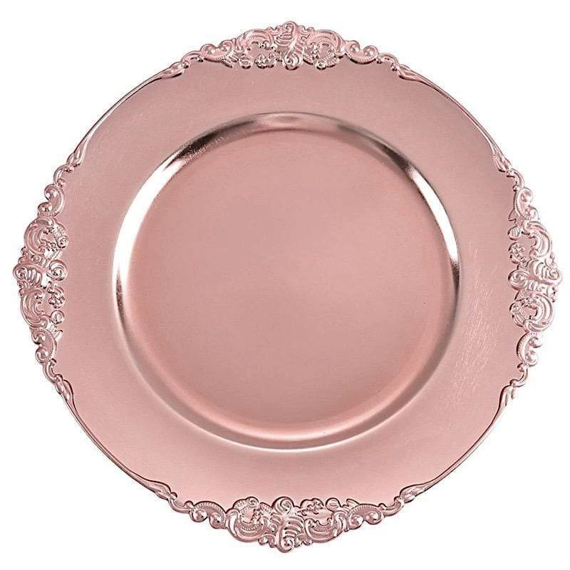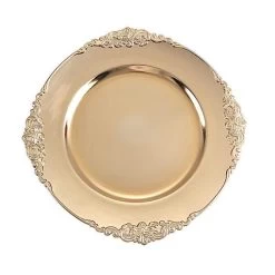 Nothing makes an ideal addition to your fancy table settings like these elegant acrylic round charger plates! These chargers with classic embossed edge details are perfect for special occasions like holiday or traditional dinners, bridal showers, graduation luncheons, birthday parties and more. They are easy to clean, just wipe with damp cloth or sponge.