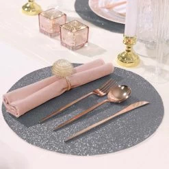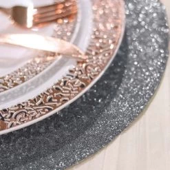 Create the perfect mood for every dinner occasion with these sparkling placemats! These multipurpose glittered placemats can be used in a variety of ways. Whether as chargers for your dinnerware or as a base for your gorgeous centerpieces, these reusable non slip placemats will bring a touch of contemporary style to your formal or casual table setting. Surprise your guests with a charming and unique tablescape. The possibilities are endless!