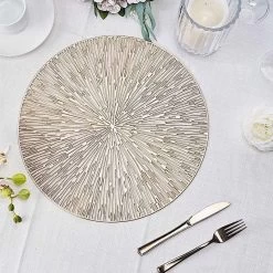 Create the perfect mood for every dinner occasion with these stunning placemats! These multipurpose spike placemats can be used in a variety of ways. Whether as chargers for your dinnerware or as a base for your gorgeous centerpieces, these reusable placemats will bring a touch of contemporary style to your formal or casual table setting. Surprise your guests with a charming and unique tablescape. The possibilities are endless!
