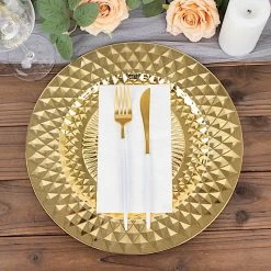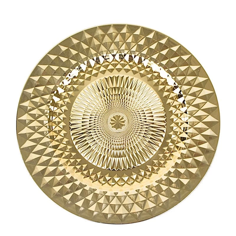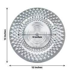 Add an elegant flair and a chic style to your table setting with these round plastic charger plates! These chargers with a shiny diamond pattern are perfect for your weddings, indoor or outdoor dinner parties, bridal showers, graduation luncheons, birthdays and more. They are easy to clean, just wash them with hot water.