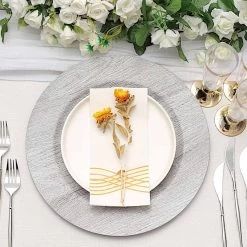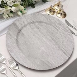 Add a rustic touch and a chic style to your table setting with these round plastic charger plates! These chargers with a wood-like texture are a perfect addition to your dinner tabletop decor. Great for your country-style weddings, boho-themed parties, bridal showers, birthdays, graduations and more. They are easy to clean, just wash them with hot water.