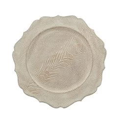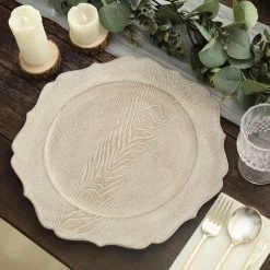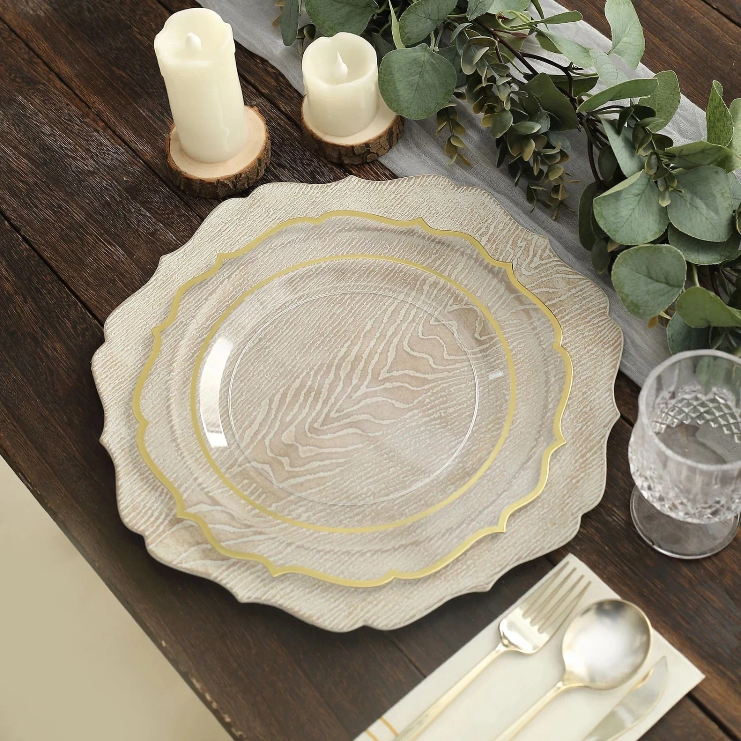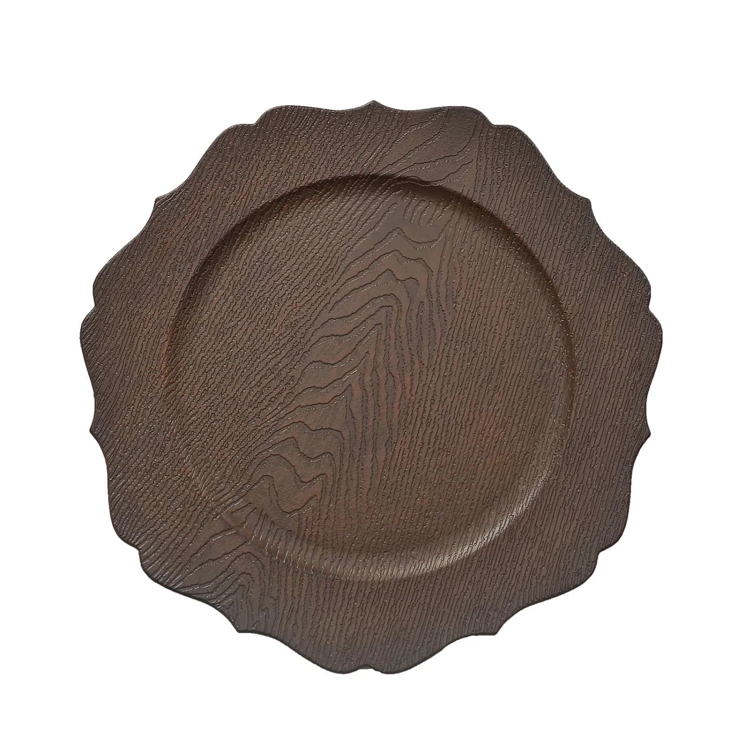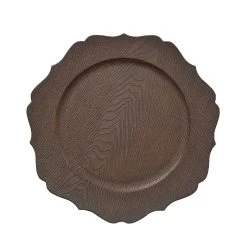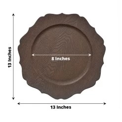 Add a rustic touch and a chic style to your table setting with these round acrylic charger plates! These chargers with a wooden texture design and sophisticated scalloped trim are perfect for your weddings, indoor or outdoor dinner parties, bridal showers, graduation luncheons, birthdays and more. They are easy to clean, just wash them with hot water.